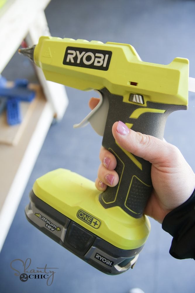 Nyní připevněte horní desky vedle sebe na horní část rámu. Tyto desky také připevníte tavnou lepicí pistolí.