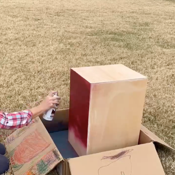 Krabice nastříkejte požadovanou barvou. Doporučujeme použít červenou a zlatou kombinaci barev, která ještě více umocní slavnostní atmosféru.